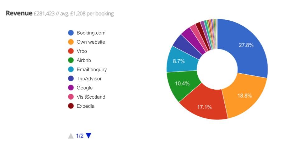 View booking and business data over time periods in highly visual styles. Compare your properties trends to pick out poor performers and take action.
